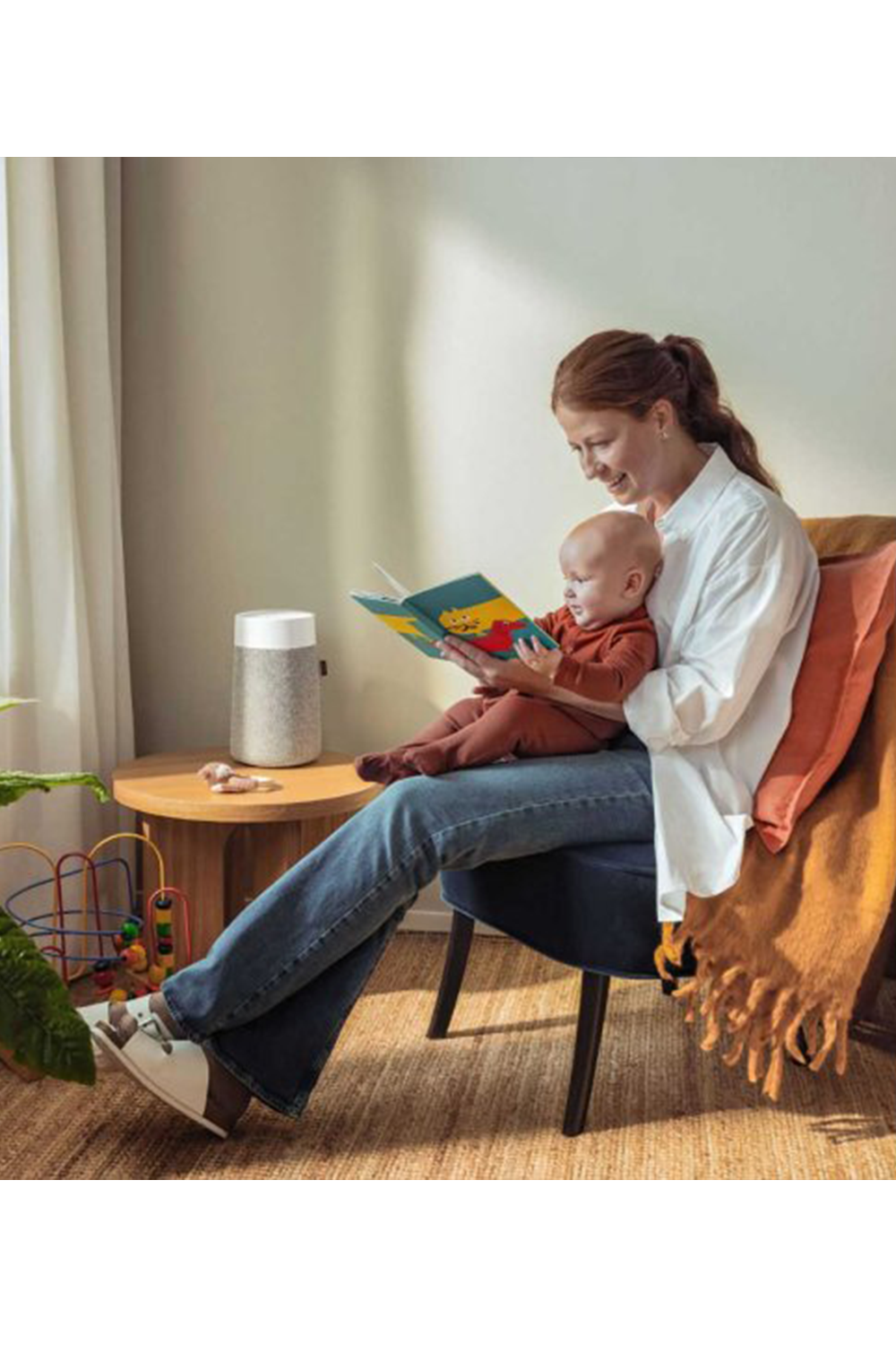 Promote better health at home with the Blueair Blue Pure Mini Max air purifier. This device filters the air in your environment, ensuring each breath is cleaner and safer. It removes up to 99.97% of airborne particles as small as 0.1 microns and also eliminates odors. It tackles pollutants like pollen, chemicals, cooking odors, smoke, pet dander, bacteria, mold, and viruses. For larger particles, its two washable pre-filters trap lint and pet hair, extending the lifespan of the primary filter.